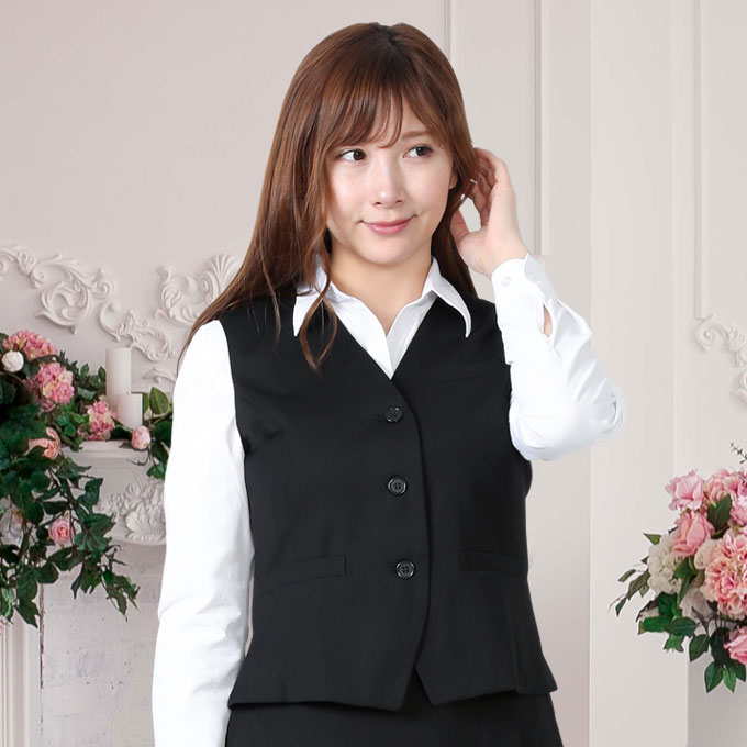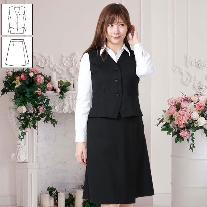 ベスト キュロット スーツ 黒無地 機能性 着易さ抜群 撥水性に優れ汚れにも強い事務服 洗濯機で洗える オールシーズン対応 [1259161c]