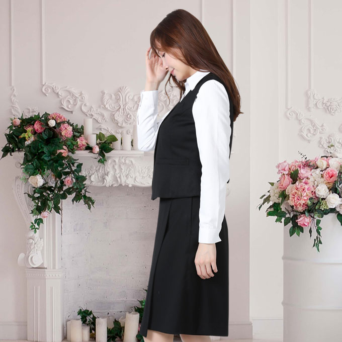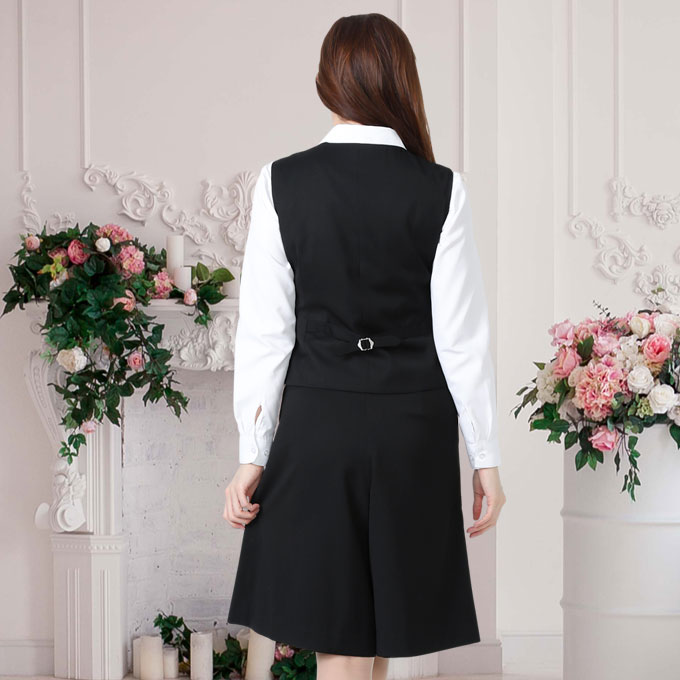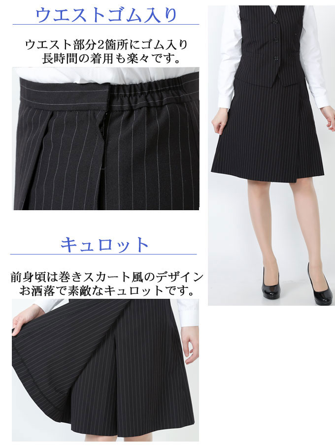 ベスト キュロット スーツ 黒無地 機能性 着易さ抜群 撥水性に優れ汚れにも強い事務服 洗濯機で洗える オールシーズン対応
