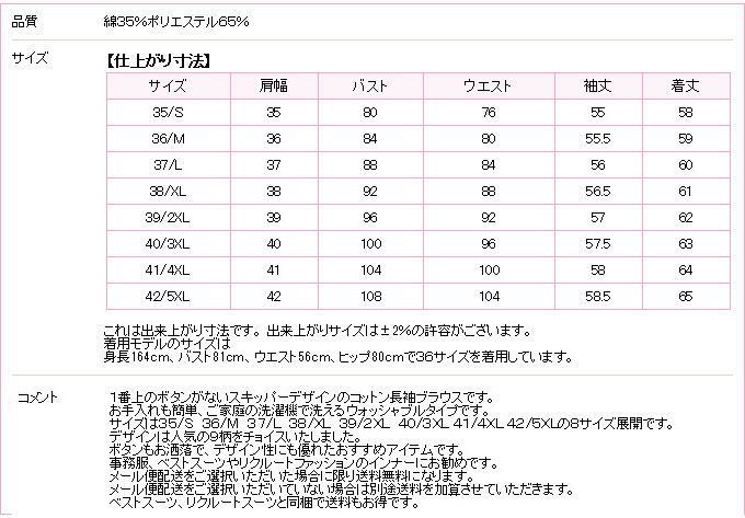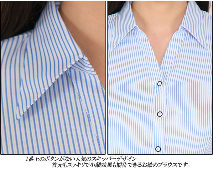 長袖ブラウス 水色ストライプ 1番上のボタンがない スキッパーデザイン 洗濯機で洗える