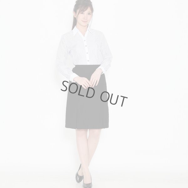 長袖ブラウス 細紺ストライプ 1番上のボタンがない スキッパーデザイン 洗濯機で洗える [16790758]