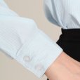 長袖ブラウス ライトブルー 1番上のボタンがない スキッパーデザイン フロッキー生地 洗濯機で洗える