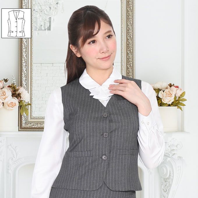 ベスト 単品 グレーストライプ 機能性 着易さ抜群 撥水性に優れ汚れにも強い 事務服 洗濯機で洗える オールシーズン対応 [1259161a]